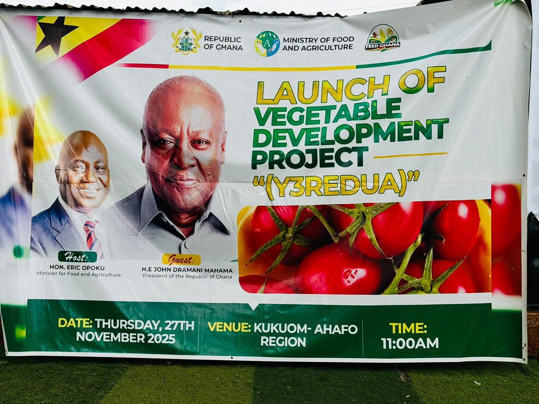 His Excellency President John Dramani Mahama has officially launched the Vegetable Development Project popularly called “Yeredua”, a transformative agricultural initiative aimed at expanding vegetable production, enhancing food security and creating sustainable employment for youth and farmers in the Ahafo Region. The launch took place on Thursday, 27th November 2025, at Kukuom, the capital of the […]