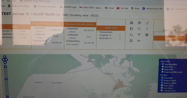 In the Assembly’s quest to ensure all properties and businesses are captured in the database. A team was dispatched to collect data at Kenyasi No.1, Kenyasi No.2, Ntotroso among others using the GPS.